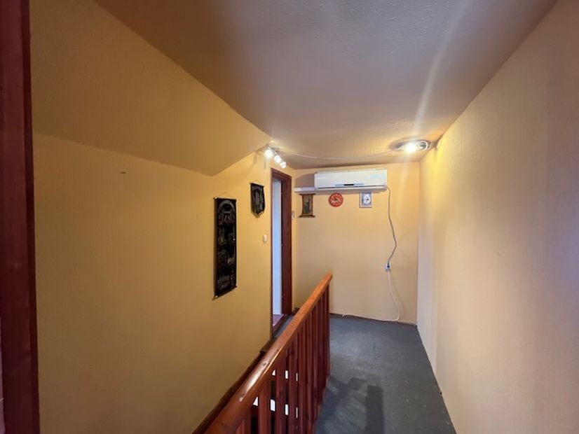 Elosztása:földszinten -előtér, amerikai konyhás nappali, fürdőszoba. Tetőtérben:közlekedő, 3 külön bejáratú szoba,loggia.
