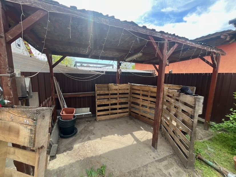 Kertben fedett kiülő található.