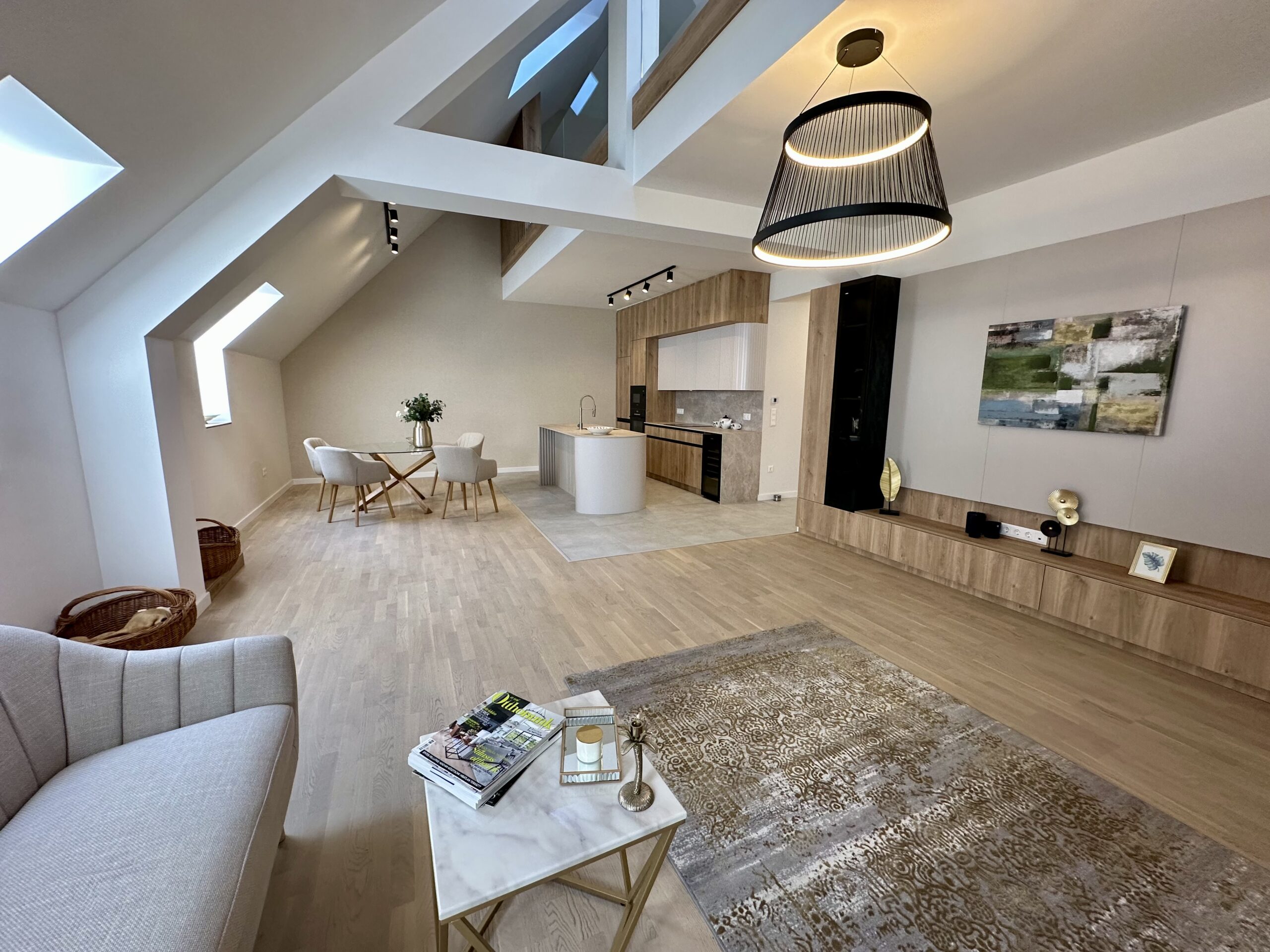 A large additional bedroom and a spacious bathroom. This level also allows for the creation of two separate bedrooms, offering the potential for a total of four separate rooms thanks to the open gallery design.