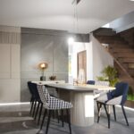 Custom-made kitchen furniture with built-in appliances (fridge, oven, cooktop, built-in microwave, wine cooler, extractor fan, dishwasher)