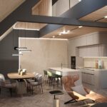 The property spans 150.31 sqm across two levels and includes a 14.58 sqm private balcony facing the inner courtyard. The layout features a living room and three bedrooms, with the possibility of creating a fourth bedroom if desired. The apartment boasts striking, extravagant spaces.