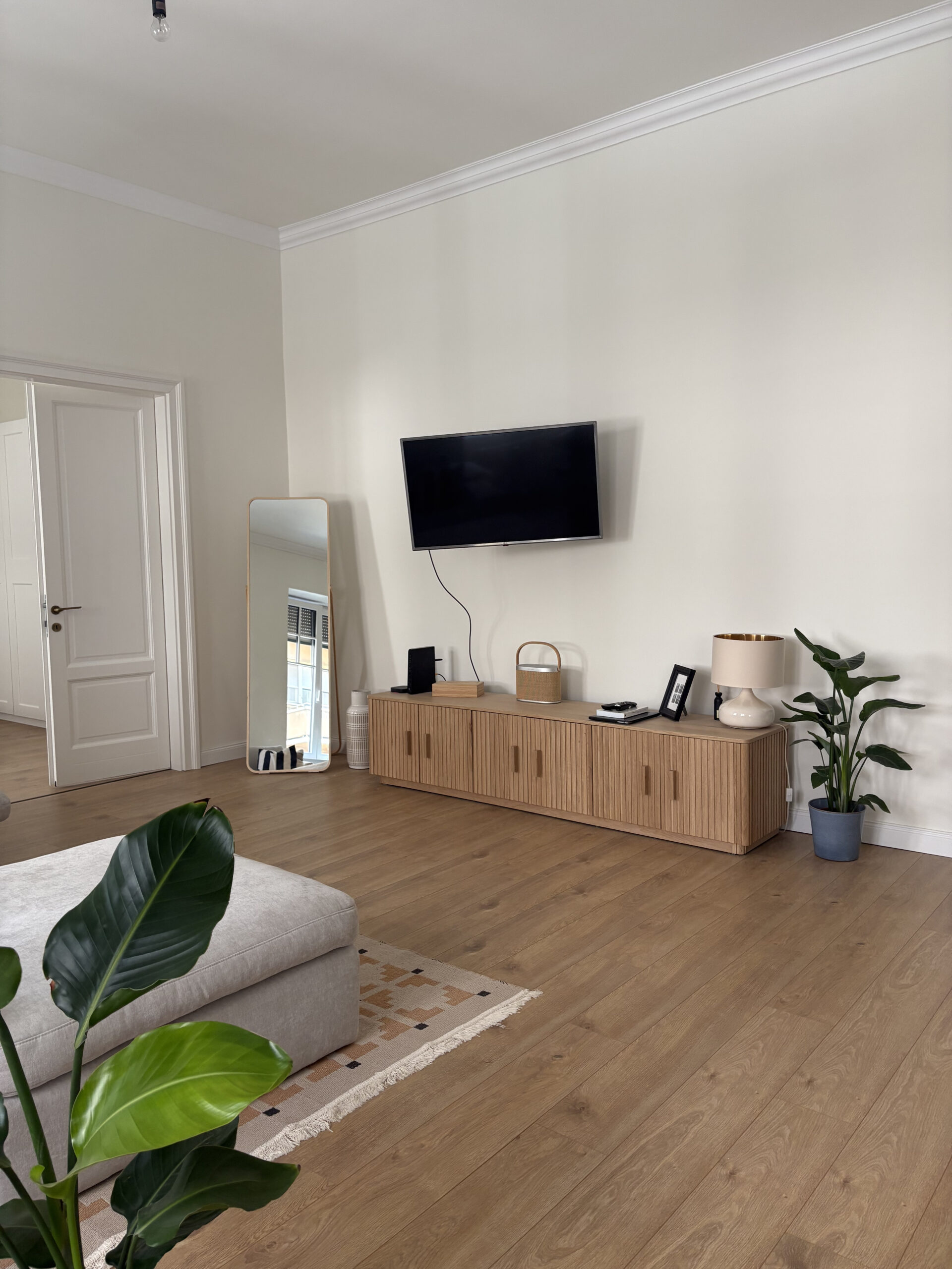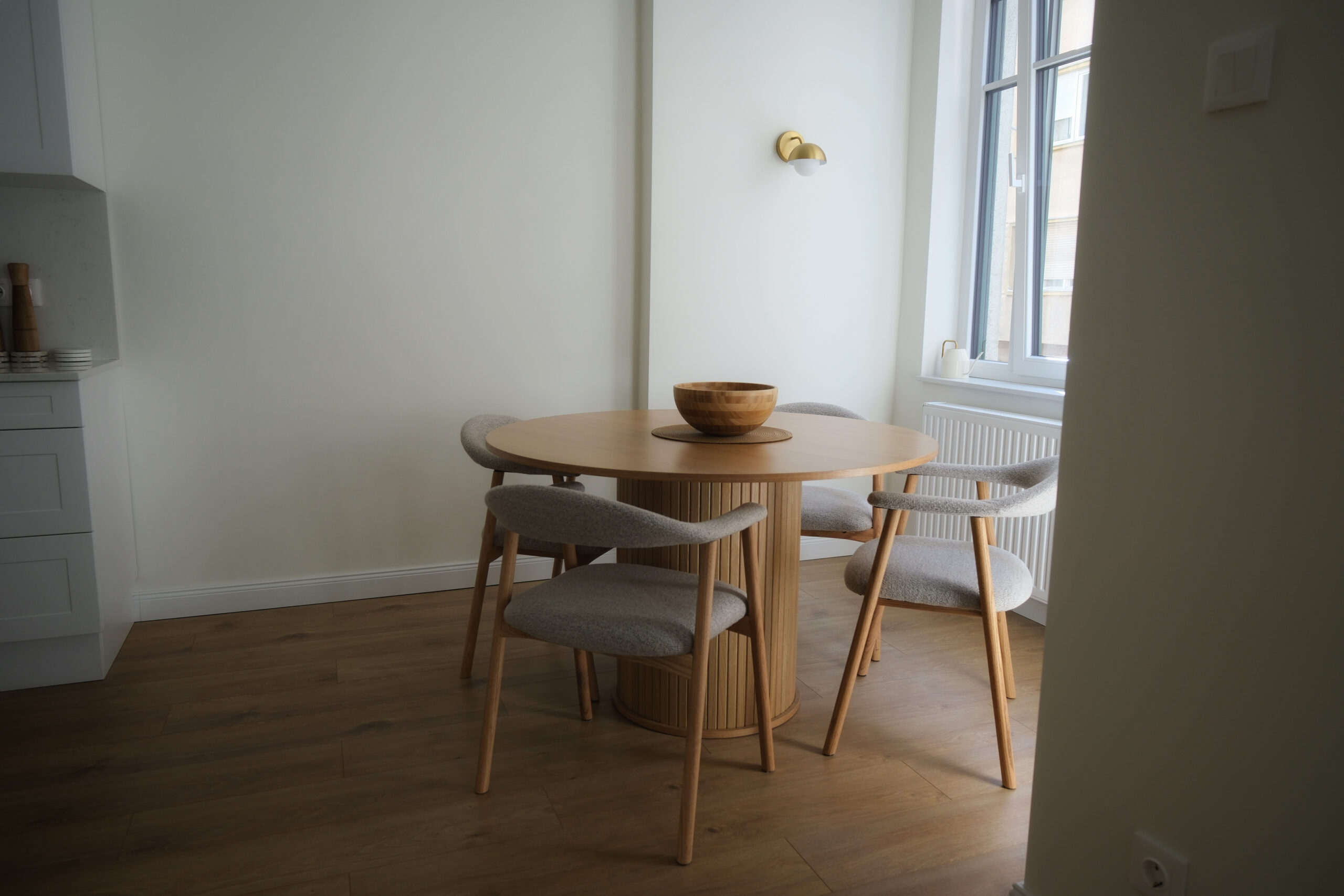 Every aspect of the apartment has been fully refurbished, including all technical systems (electrical, plumbing, heating) and aesthetic details. All built-in furniture—kitchen units, wardrobes, etc.—are custom-made, maximizing space and functionality.