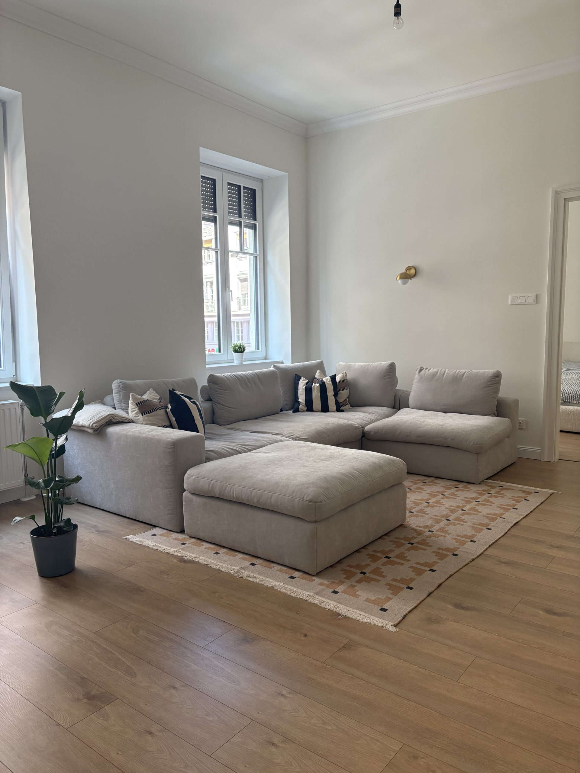 Located in one of Budapest’s most sought-after areas, just steps from Ráday Street and Kálvin Square, this beautifully renovated 91 sqm, 2-bedroom apartment is situated on the first floor (technically second floor due to the elevated ground floor) of a well-maintained building with elevator and street-facing orientation.