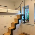 Az emelet: 2-2 hálószoba, az egyikhez egy kis erkély is tartozik. illetve egy fürdőszoba.