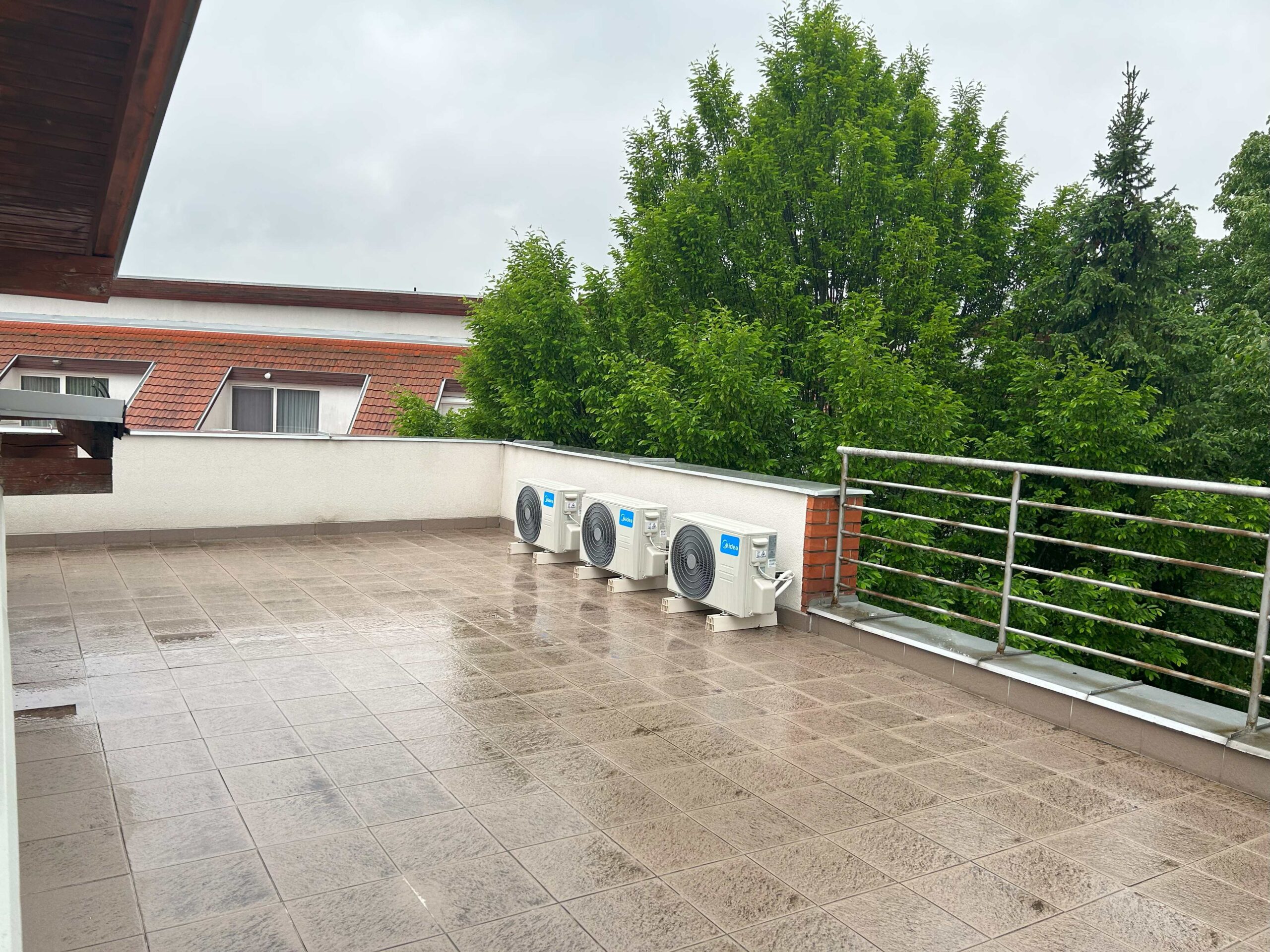 Egy szinttel feljebb pedig egy nagyméretű tetőterasz található, pazar kilátással a környező hegyekre.