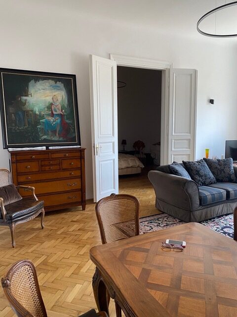Located at the beginning of Wesselényi Street in District VII, right next to the Dohány Street Synagogue, this property is for sale on the 4th floor of a lift-equipped building. The apartment is 112 sqm and features bright, spacious living areas with 2.5 rooms, a kitchen, hallway, bathroom (bathtub), separate WC, and pantry. It was fully renovated in 2022, including: