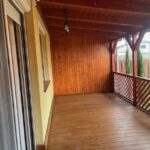 Elosztása a földszinten:-előtér, közlekedő, fürdőszoba, 1 szoba, tároló, amerikai konyhás nappali,fedett terasz (10 nm)