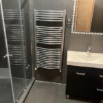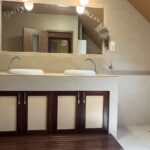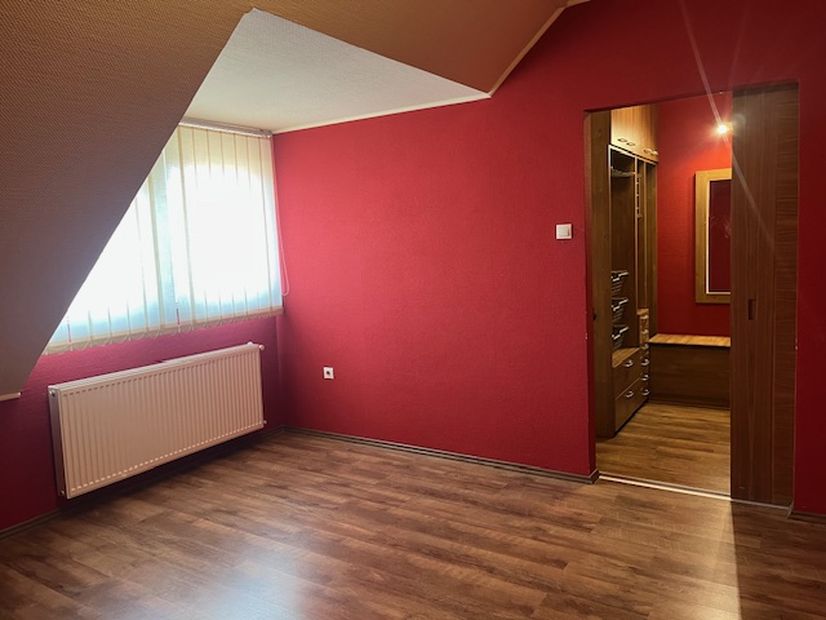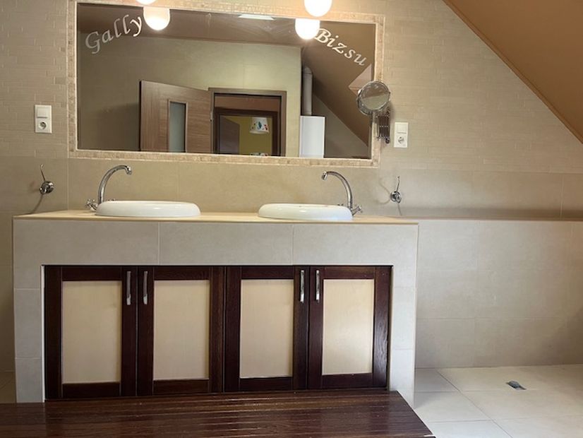 Az emeleten 2 szoba és egy teljesen beépített gardrobszoba, nagy fürdőszoba. Fűtés:Padlófűtés a fürdőszobákban, gázcírkó, nappaliban épített kandalló is.