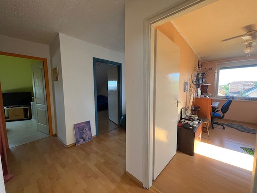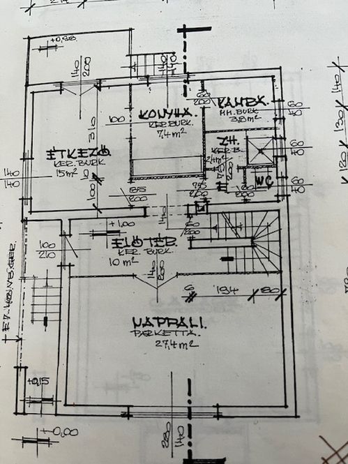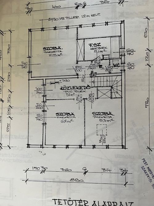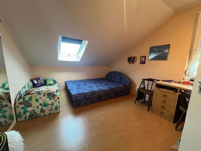 Emeleten:közlekedő,3 külön bejáratú szoba,fekvését tekintve az egyik nagy szobából két hálószoba kialakítható,fürdőszoba,külön wc.Emeleti szinten 8 nm loggia található.