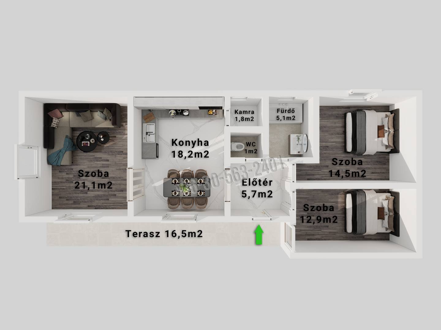 •14,5 m² és 12,9 m² kényelmes hálószobák,