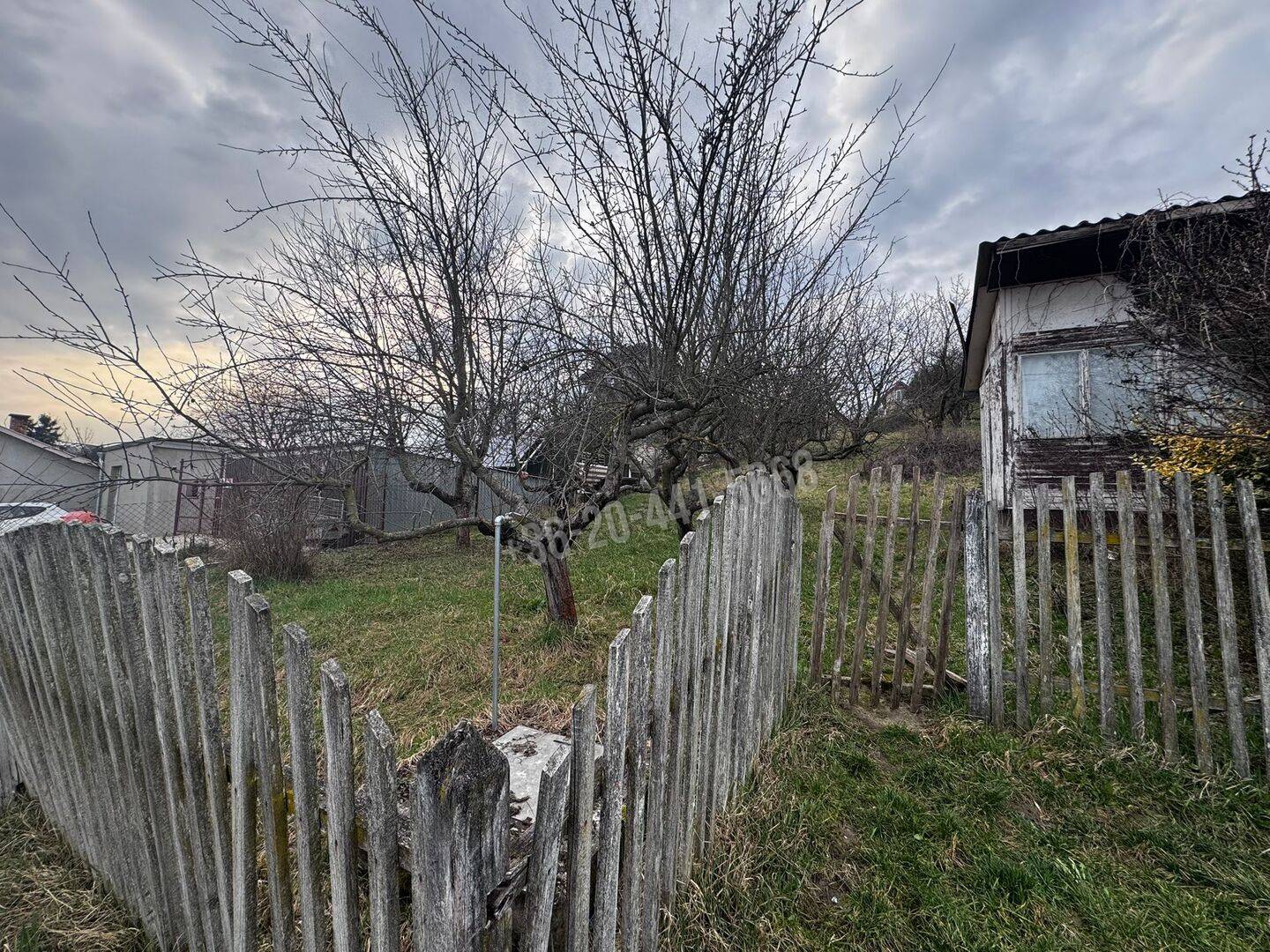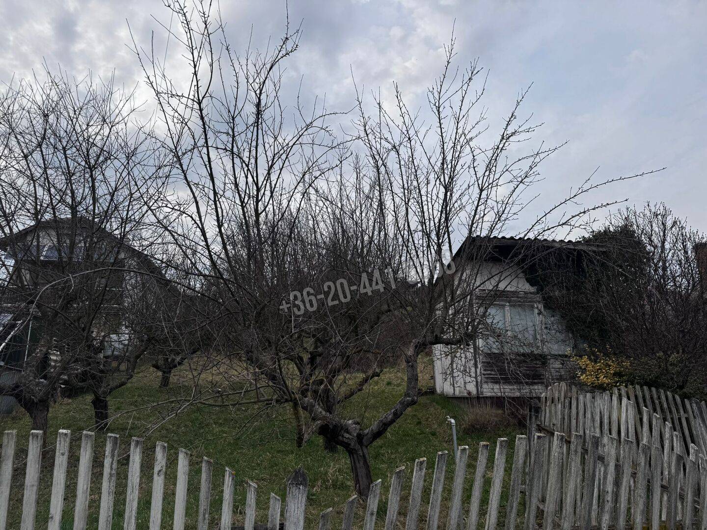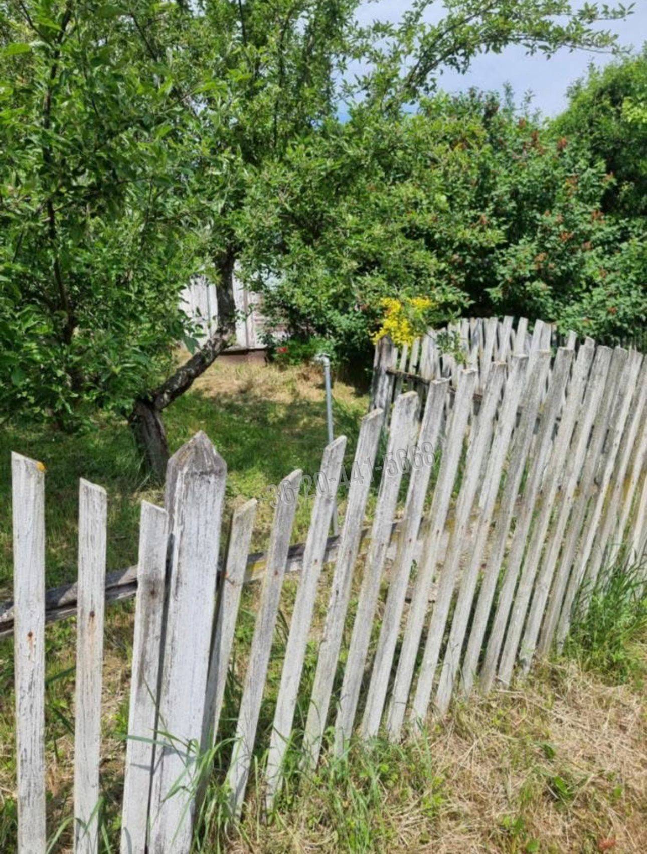 A telken található egy kisebb fa házikó, valamint egy külön kerti tároló/raktár, amely a szerszámok és kerti eszközök tárolására alkalmas.