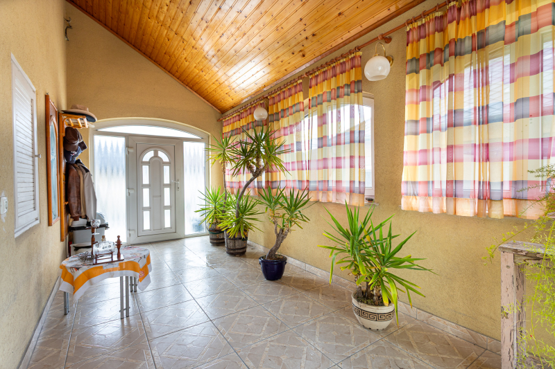Vasbeton lábazat, tégla falazat, monolit, vasbeton födémek, fa ácsszerkezet, cserép héjalás. Hő- és hangszigetelt, műanyag homlokzati nyílászárók, redőnyökkel. Újszerű, turbós gázcikró biztosítja a radiátoros fűtést és villany bojler a meleg vizet. Riasztó, kaputelefon. Beépített konyhabútor. Rozsdamentes kerítés és korlát elemek. Két állásos felszíni parkoló.