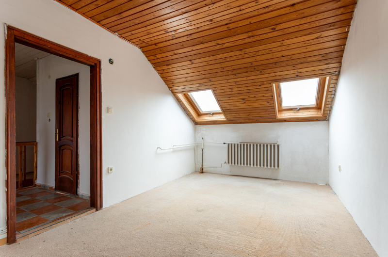 A tetőtér 95,37 m2 és nem volt használatban (4 szoba, melyből egy szoba erkélyes, műterem jellegű, fürdőszoba-wc, közlekedő.)