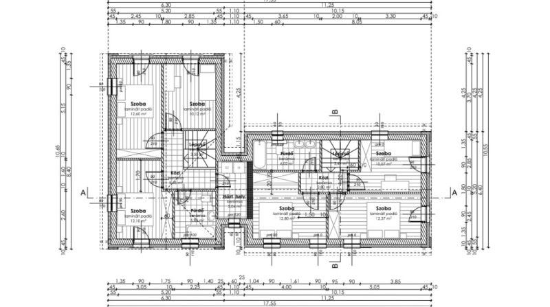 Hideg burkolati helyiségek :gépészet,fürdőszoba,előszoba,nappali-konyha