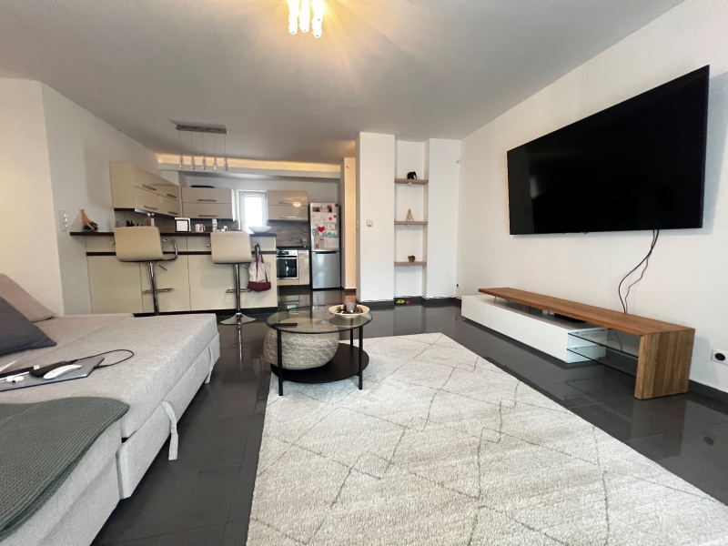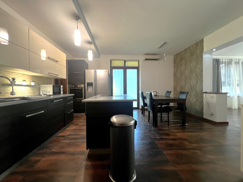 A földszinti lakás nettó alapterülete 76.5 nm, amely egy több mint 43nm-es nappali, valamint szeparált konyha étkező, kamrával és egy hálószobával, gardróbbal, nagyméretű fürdőszobával. A fürdőszobában kád wc, és zuhany is beépítésre került, egy további különnyíló wc kézmosó is található a földszinti lakásnál.