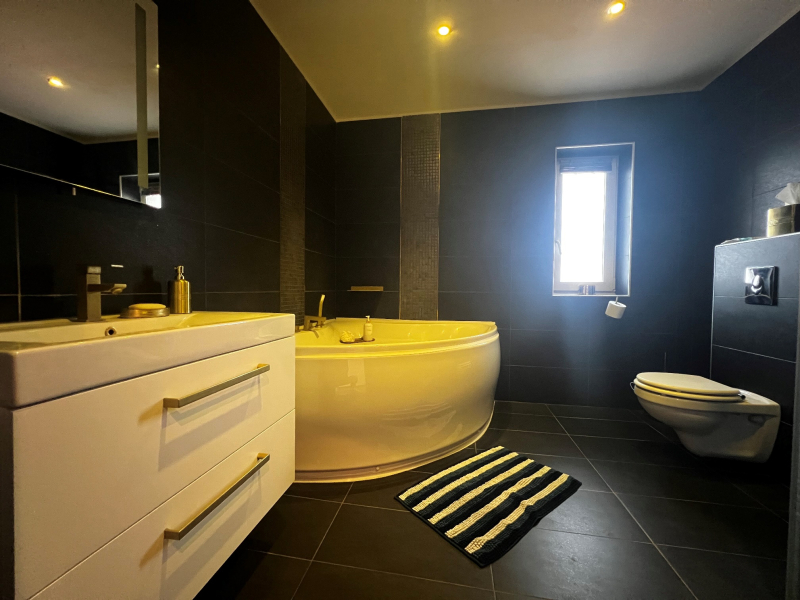 A házhoz tartozó szuterén 4 helyiségből áll, az alapterülete 74 nm, akár edzőterem akár közösségi tér is kialakítható, egy zuhanyzós fürdőszoba wc is kialakításra került így akár vendég lakásként is használható.
