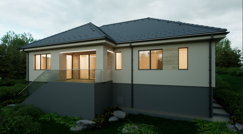 A ház – csakúgy, mint a kivitelező számtalan, megtekinthető referencia háza esetében is – magas minőségi anyagok felhasználásával és magas műszaki tartalommal épül.