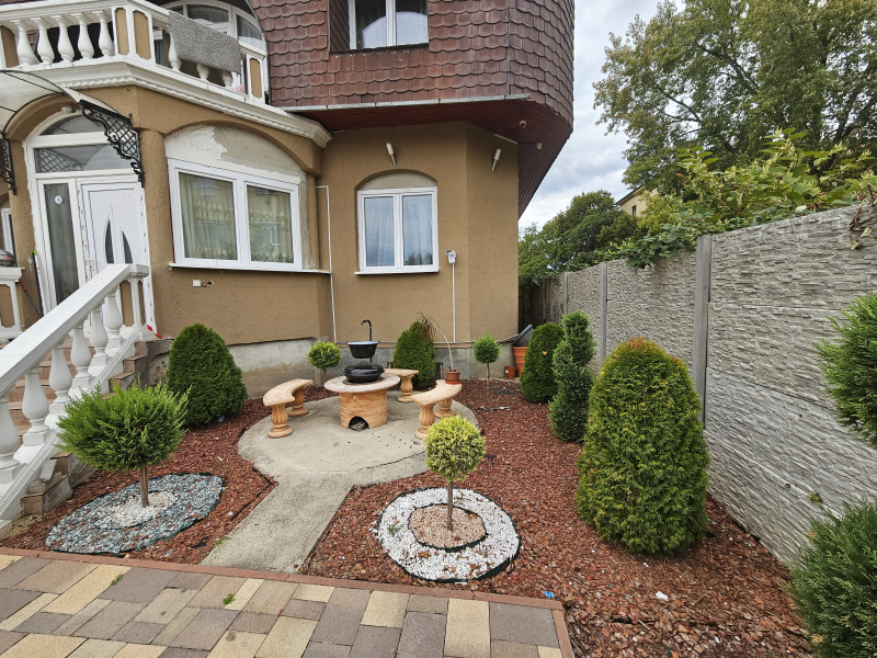 Kert és külső rész: Az ingatlan egyik legnagyobb vonzereje a parkosított, gondozott kis kert, amely valódi kikapcsolódást nyújt: