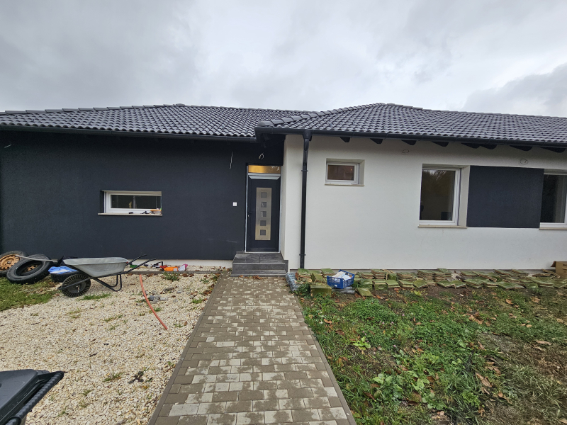 A homlokzatra 15 cm-es dryvit, a lábazatra 10 cm-es xps, az aljzatra 10 cm-es lépésálló és a fa szerkezetű födémre 25 cm-es kőzetgyapot szigetelés kerül.
