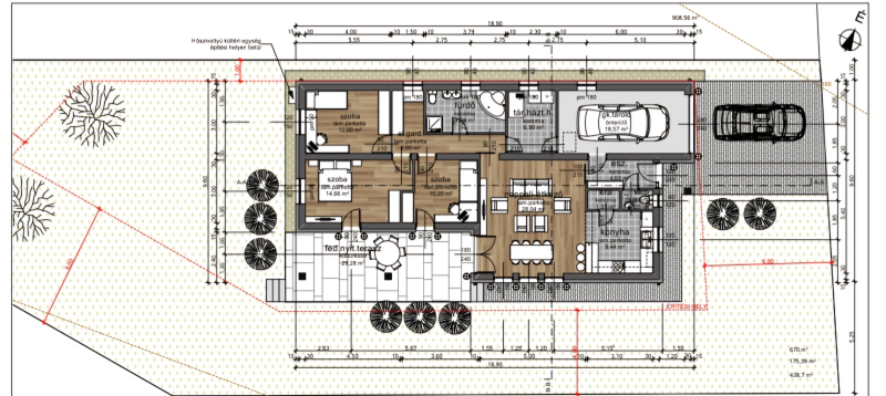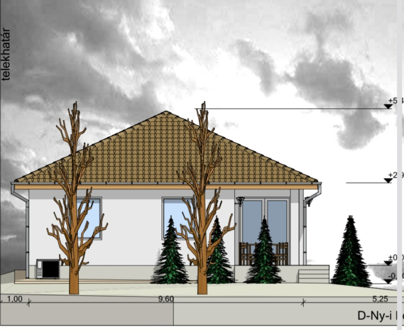 Kiváló adottságú telek előnyeit figyelembe véve alaposan átgondolt tervezés alapján épül az ingatlan benapozottsága optimális.