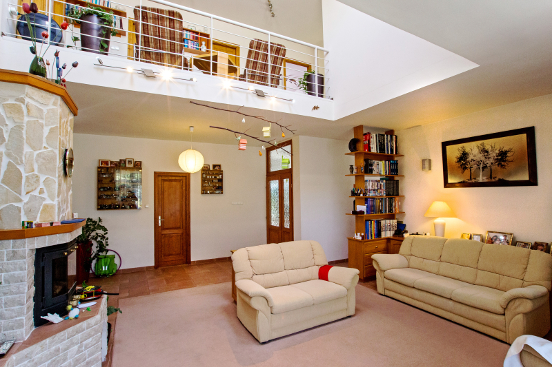 A szobák és a vizes helyiségek mind egy tágas és fényes galériáról nyílnak, amelyről a nappalira is remekül lelátni.