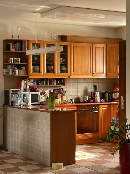 Az egész ház világos, a reggeli napsugarak és a délutáni fények ugyanolyan kellemes hangulatú atmoszférát biztosítanak a lakásban.