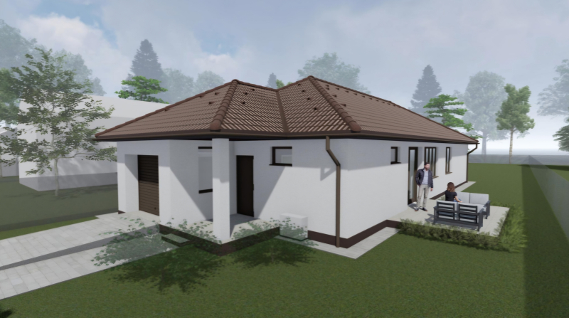 Kiváló adottságú telek előnyeit figyelembe véve alaposan átgondolt tervezés alapján épül az ingatlan benapozottsága optimális.