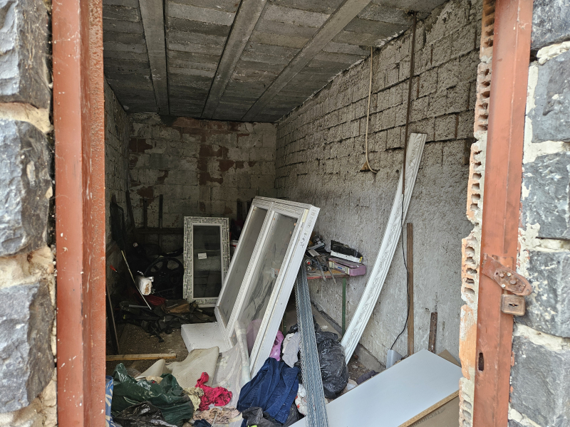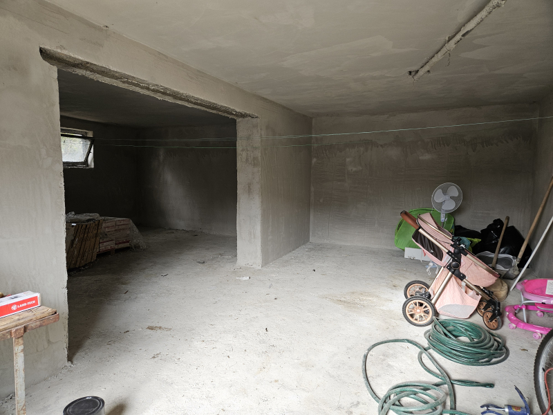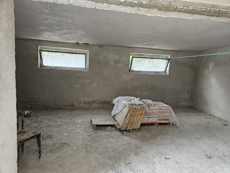 Földszint (60m2): 2 nagy térből áll, kialakításra vár, vakolt falak, új nyílászárók a bejárata mellett 8 nm-es tároló!