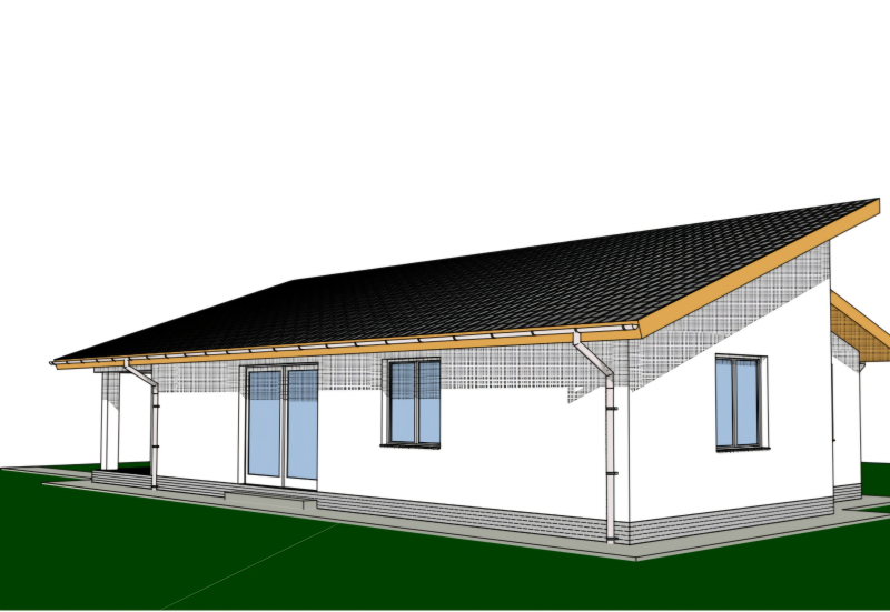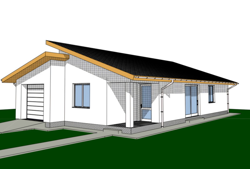 A ház vasalt, szigetelt beton sávalapra épül, 30-as Porotherm tégla tartófalakkal és 10-es Porotherm tégla, vakolt válaszfalakkal.
