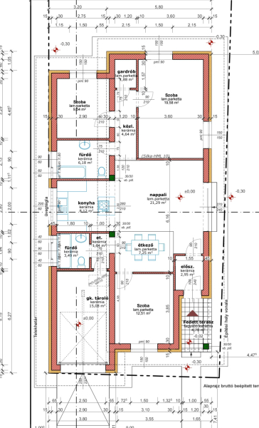 Kiváló adottságú telek előnyeit figyelembe véve alaposan átgondolt tervezés alapján épül az ingatlan benapozottsága optimális.