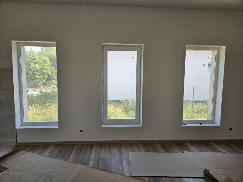 A homlokzatra 15 cm-es dryvit, a lábazatra 10 cm-es xps, az aljzatra 10 cm-es lépésálló és a fa szerkezetű födémre 30 cm-es kőzetgyapot szigetelés kerül.