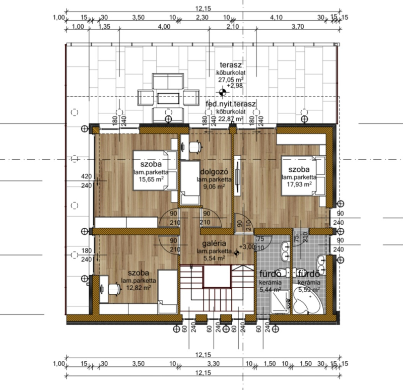 – Szülői lakrész külön gardróbbal, saját fürdővel.