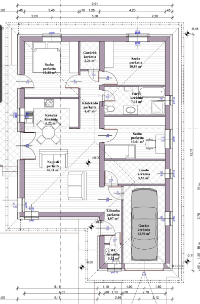 Kiváló adottságú telek előnyeit figyelembe véve alaposan átgondolt tervezés alapján épül az ingatlan benapozottsága optimális.