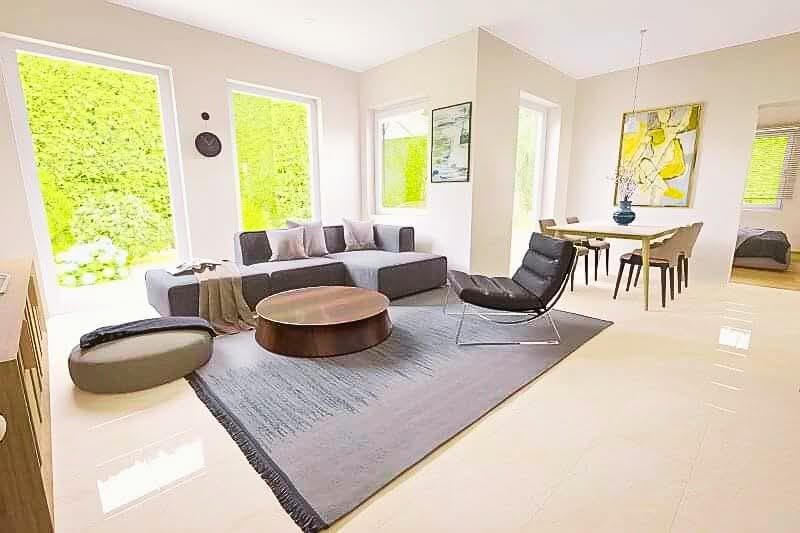 A fűtésről hőszivattyú gondoskodik, padlófűtéssel.