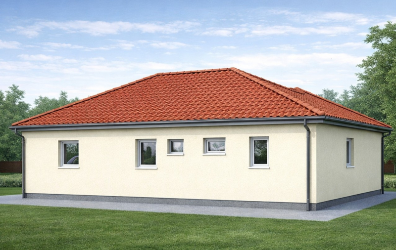 A ház vasalt, szigetelt beton sávalapra épül, 30-as Porotherm tégla tartófalakkal és 10-es Porotherm tégla, vakolt válaszfalakkal.