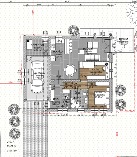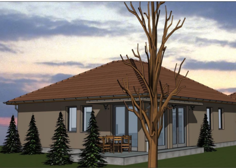Kiváló adottságú telek előnyeit figyelembe véve alaposan átgondolt tervezés alapján épül az ingatlan benapozottsága optimális.