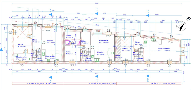 1számú lakás: nettó 122,15 nm(N+3 szoba) + 13,18 nm terasz + saját kertrész