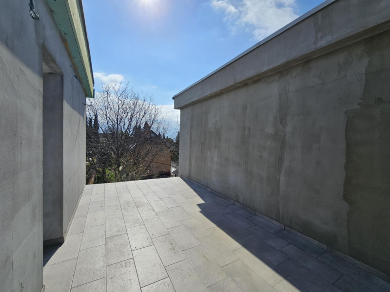 Dél-keleti tájolású nappali előtti 17 négyzetméteres terasz.