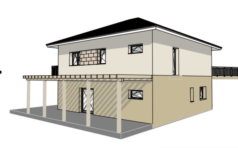 A hírdetésben megjelent külső látványtervek az engedélyezett ház tervei. Azaz a leendő végleges formát tükrözik.