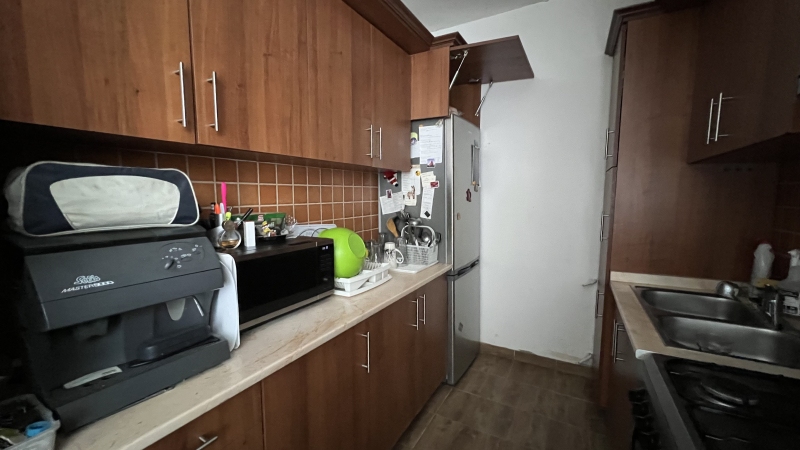 Konyhabútor beépített gépekkel, közlekedőben beépített szekrények a vételár részét képzik.
