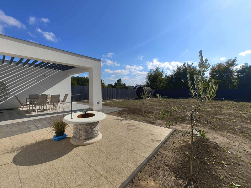 Kert: A házhoz (tervezett zöldfelület) 553,61 m2 kert tartozik, amelyben automata öntözőrendszer került előkészítésre. A nappalit a kerttel nagy méretű, déli fekvésű terasz kapcsolja össze.