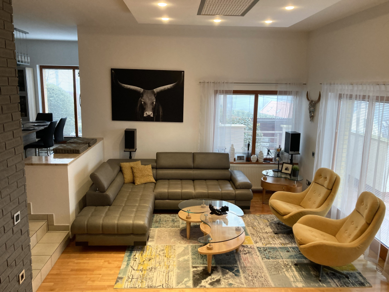 Piliscsaba panorámás lakóparkjában nagy gonddal és szeretettel épített családi ház vált eladóvá. Igényes tervezés, minőségi anyagok, újszerű állapot jellemzi.