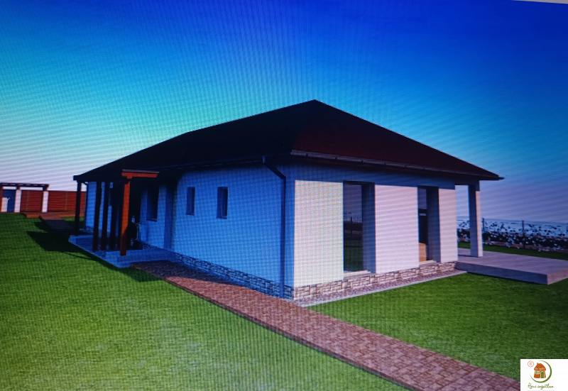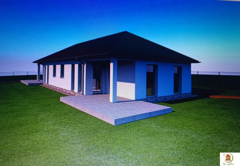 Beosztás: Nappali (20m²), 3 szoba, konyha, fürdőszoba, WC, tároló, előtér, szélfogó, fedett terasz
