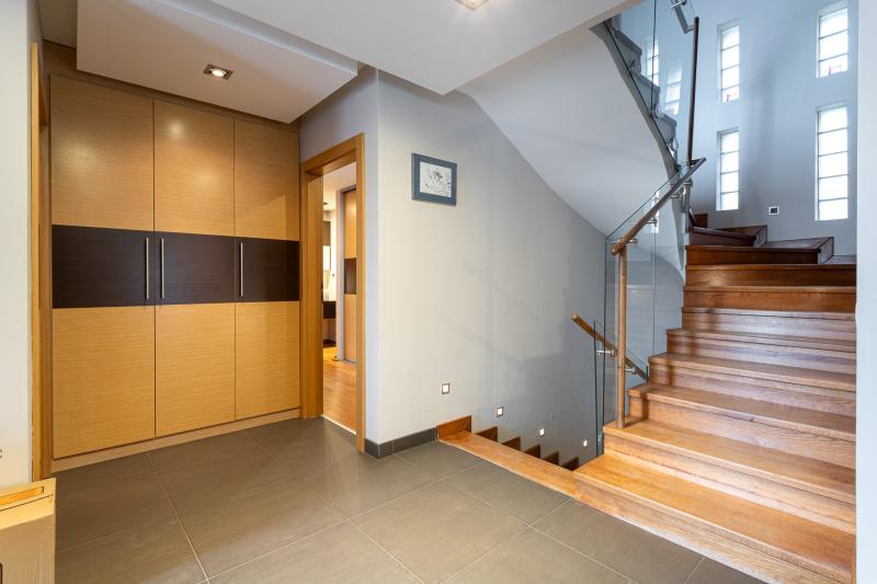 A 908 m2-es, összközműves telekre, dupla főfalakkal elválasztott ikerház 2007-ben, belsőépítész tervek által épült, a kor legmodernebb, legkorszerűbb technológiáinak, minőségi anyagainak a felhasználásával. 38 cm-es Porotherm tégla főfalak 10 cm Dryvit hőszigeteléssel. Mindegyik födém vasbeton. Bramac cserép héjalás. Hő- és hangszigetelt, fa homlokzati nyílászárók szúnyoghálókkal. Viessmann 24 KW-os, turbós gázkazán, 200 literes hmv tartállyal biztosítja a falfűtést és a radiátoros fűtést valamint a meleg víz ellátást. Beépített vízlágyító. 3×16 + 16 Amper. Nappaliból nyíló terasz a földszinten és két szobából is megközelíthető erkély az emeleten. Beépített, gépesített konyhabútor, beépített szekrények az előszobában, gardróbban, háló- és gyerekszobákban. Riasztó. Split klímák mindkét szinten. Kandallókémény. Extra minőségű burkolatok, anyagok, szaniterek, csaptelepek, üveg korlátok, beltéri és kültéri világító testek. Elektromos kapuk és hőszigetelt, szekcionált garázsajtó. Színterezett, alumínium ereszcsatorna rendszer. Parkosított, kertész által karbantartott kert automata öntözőrendszerrel, csepegtetővel. Épített utcafronti kerítés. Külön víz-, villany- és gázóra. Ügyvéd által ellenjegyzett használati megállapodás szabályozza a tulajdon viszonyokat.