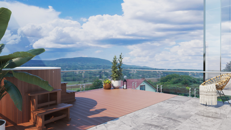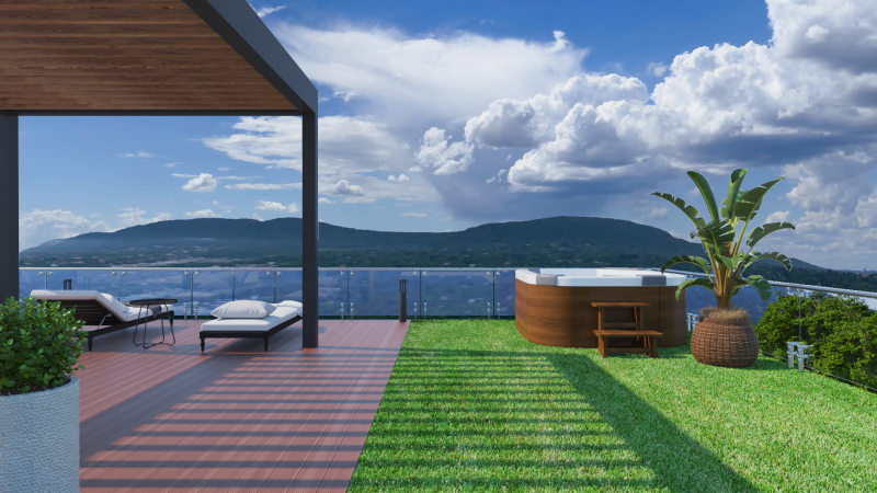 Lélegzetelállító panorámában gyönyörködhet, miközben Jakuzziban pihen vagy a bárpultnál , nyári grillezőnél tölti szabadidejét privát tetőteraszán.