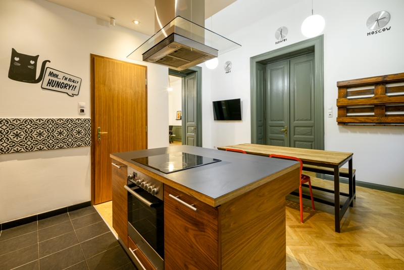 A lakásban külön gépesített konyha, nappali + három hálószoba, 2 tv, és 2 fürdőszoba található. Légkondicionnálóval és 2 tv-vel felszerelt.