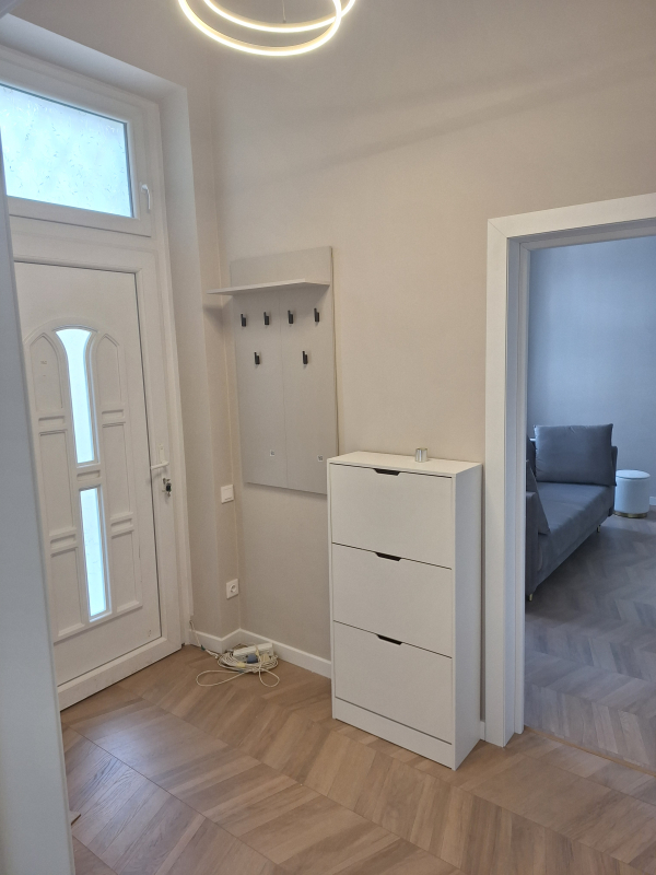 A lakás tágas amerikai konyhás nappalival, két hangulatos hálószobával (két gardróbszekrény bőséges tárolási lehetőséggel) egy fürdőszobával rendelkezik.