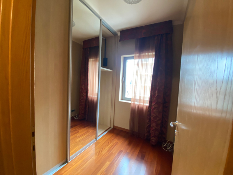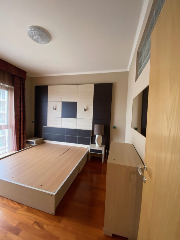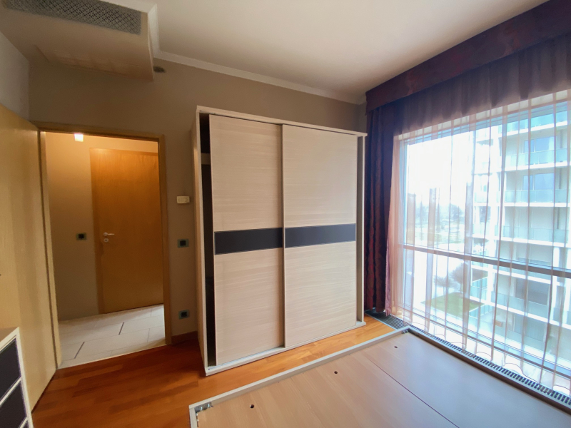 egy nagyméretű hálószobával és egy kis dolgozó szobával ( gardrób is lehet de !!!- nem alkalmas ágy elhelyezésére ) – ezért írtuk csak 2 szobásként a lakást )rendelkező, Öbölre full panorámás, nagy erkélyes ( 10nm ), bútorozott, gépesített , 4. emeleti apartman.