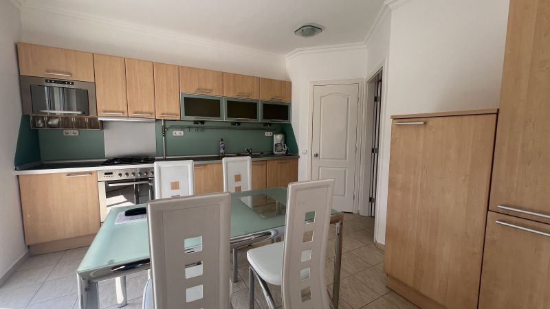 A lakás teljesen berendezett beépített konyhabútor beépített gépekkel, beépített szekrények, bútorok, étkező garnitúra, ágyak ,kanapé, előszoba bútor,nappali bőrgarnitúra,mosógép stb.