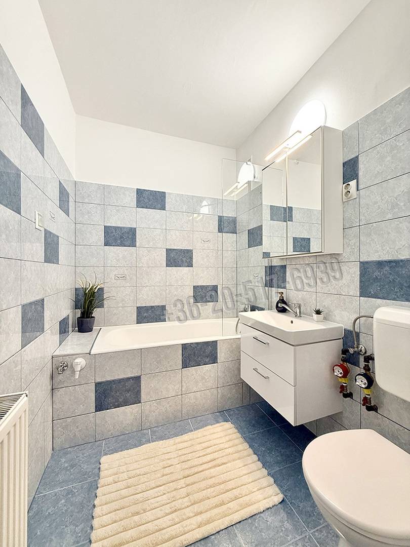 A fürdőszoba új ÜVEGFALLAL, új MOSDÓVAL és MOSDÓSZEKRÉNNYEL van felszerelve. A vízórák is 2025-ben frissen lettek cserélve, így az elkövetkező években azzal sem kell foglalkozni.
